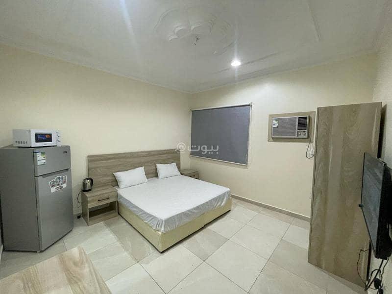 Furnished studio apartment for monthly rent in Jeddah, Al Murwah district. Bedroom and bathroom. Building features: free maintenance throughout the contract, including electricity and water, guard service, surveillance cameras, and safety equipment. Location advantages: all services (supermarkets, restaurants, personal care) are available nearby, 5 minutes from King Abdulaziz International Airport, 15 minutes from Time Fitness Club, 12 minutes from Prince Majid Park. License number 1200000665, License number 7200479357.
