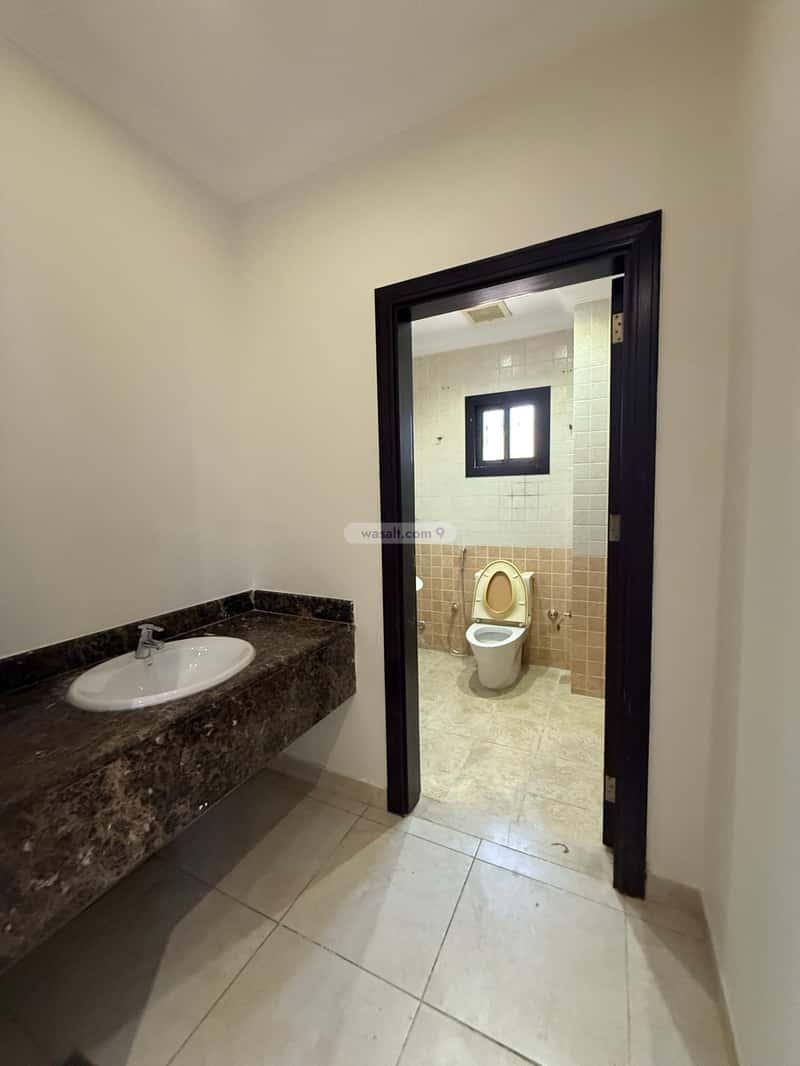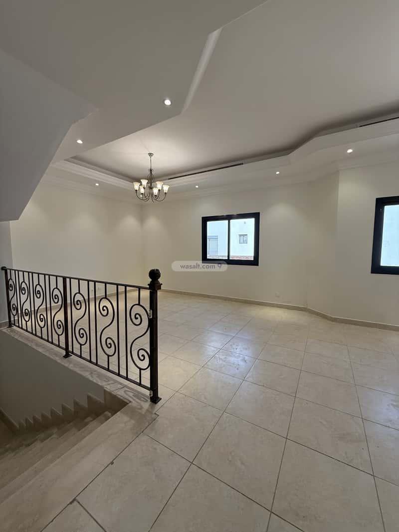 أما **الدور الأول** فيضم أربع غرف نوم فسيحة، كل غرفة بحمام خاص وصالة ومطبخ خدمات.