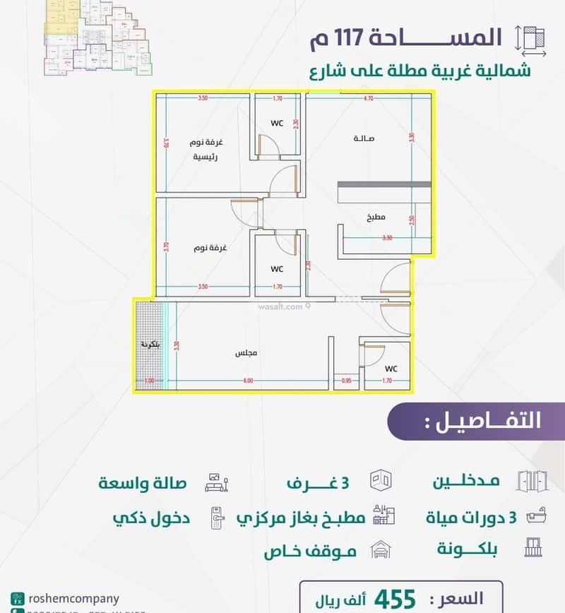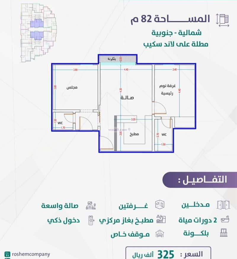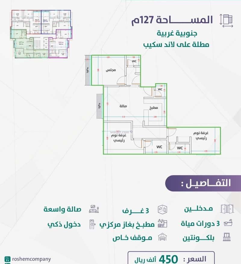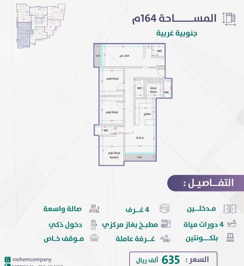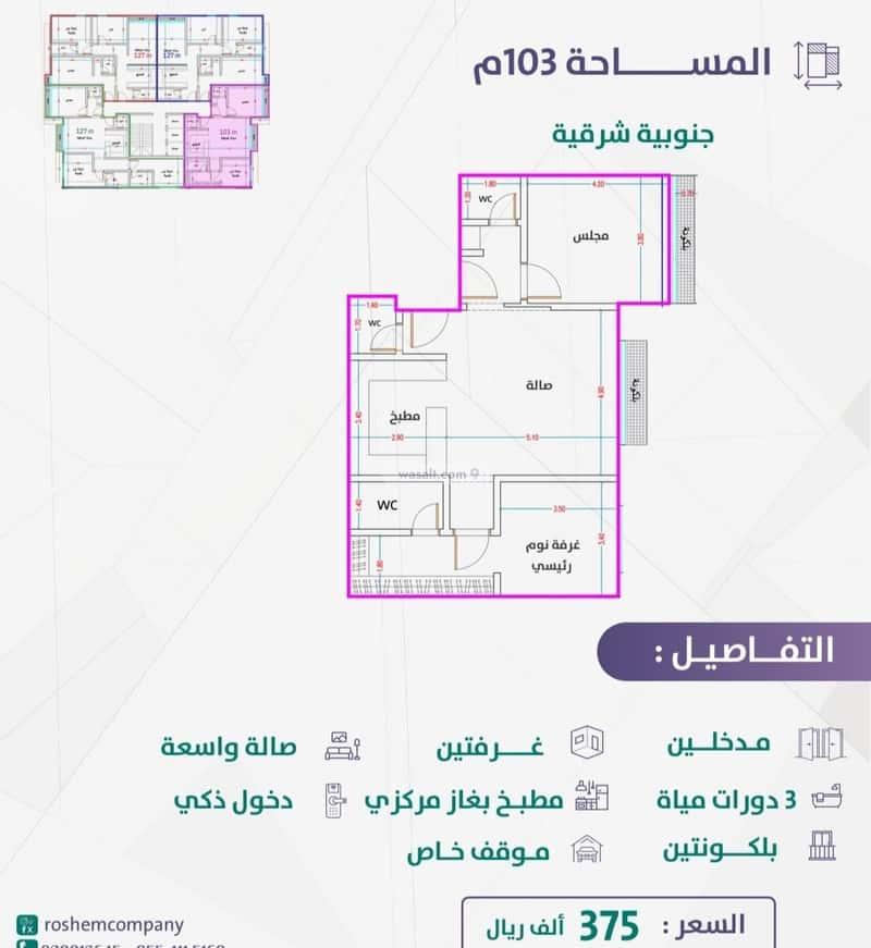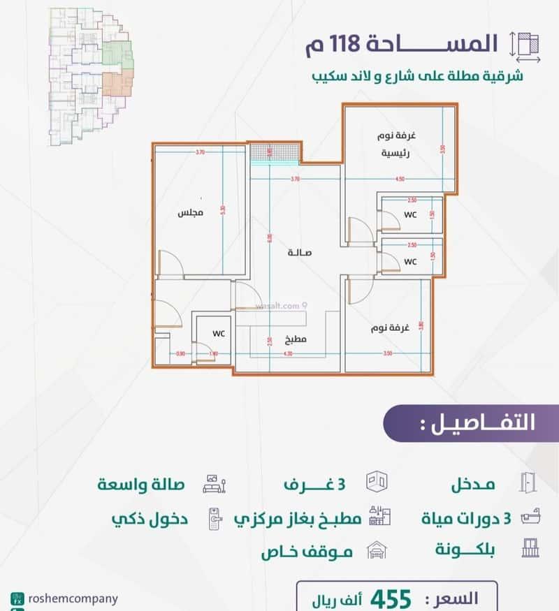 The property has 9 floors, 2 bedrooms, 3 bathrooms, 1 living room, 1 guest room