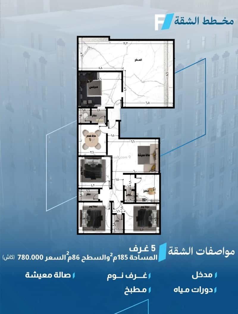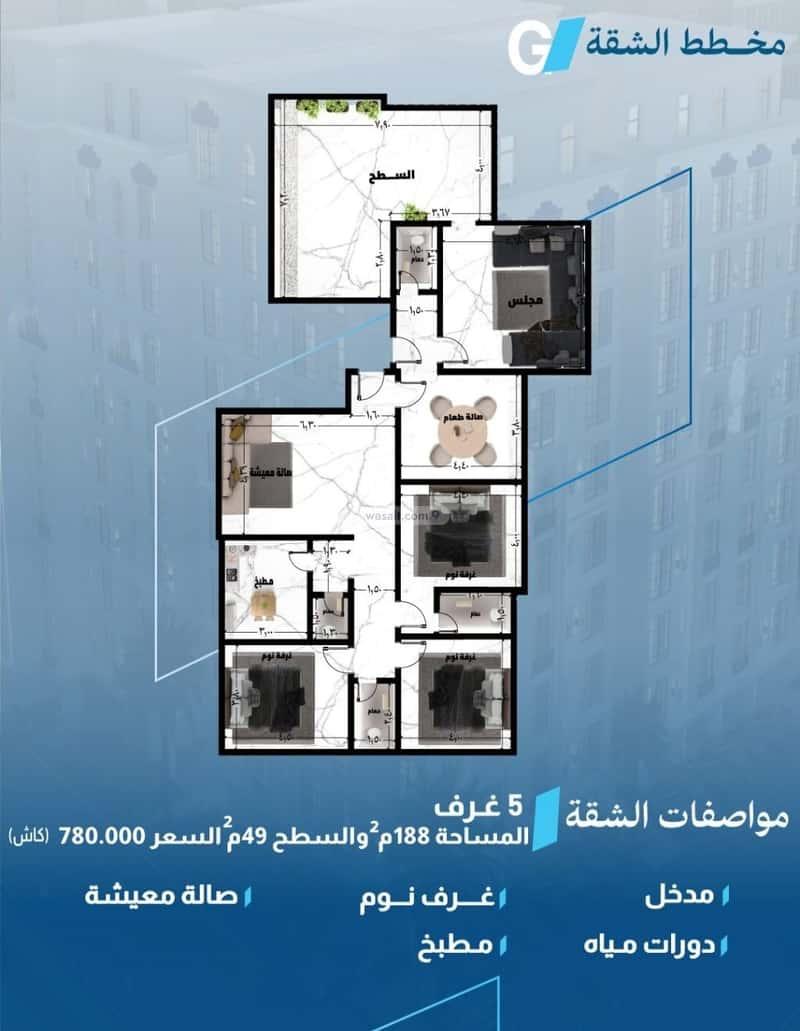 The property has 5 floors, 5 bedrooms, 4 bathrooms, 1 living room, 1 guest room