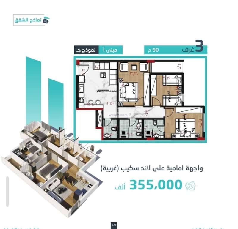 *ثلاث غرف خلفيه على لاند سكيب مساحه ٨٨م بسعر ٣٥٥الف*