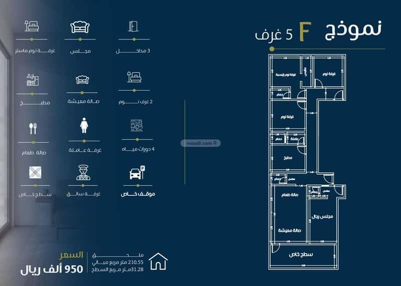مكونة من:غرفتين و 3 غرف و4غرف وملحق 5و6 غرف تواصل الان مع ممثل المبيعات