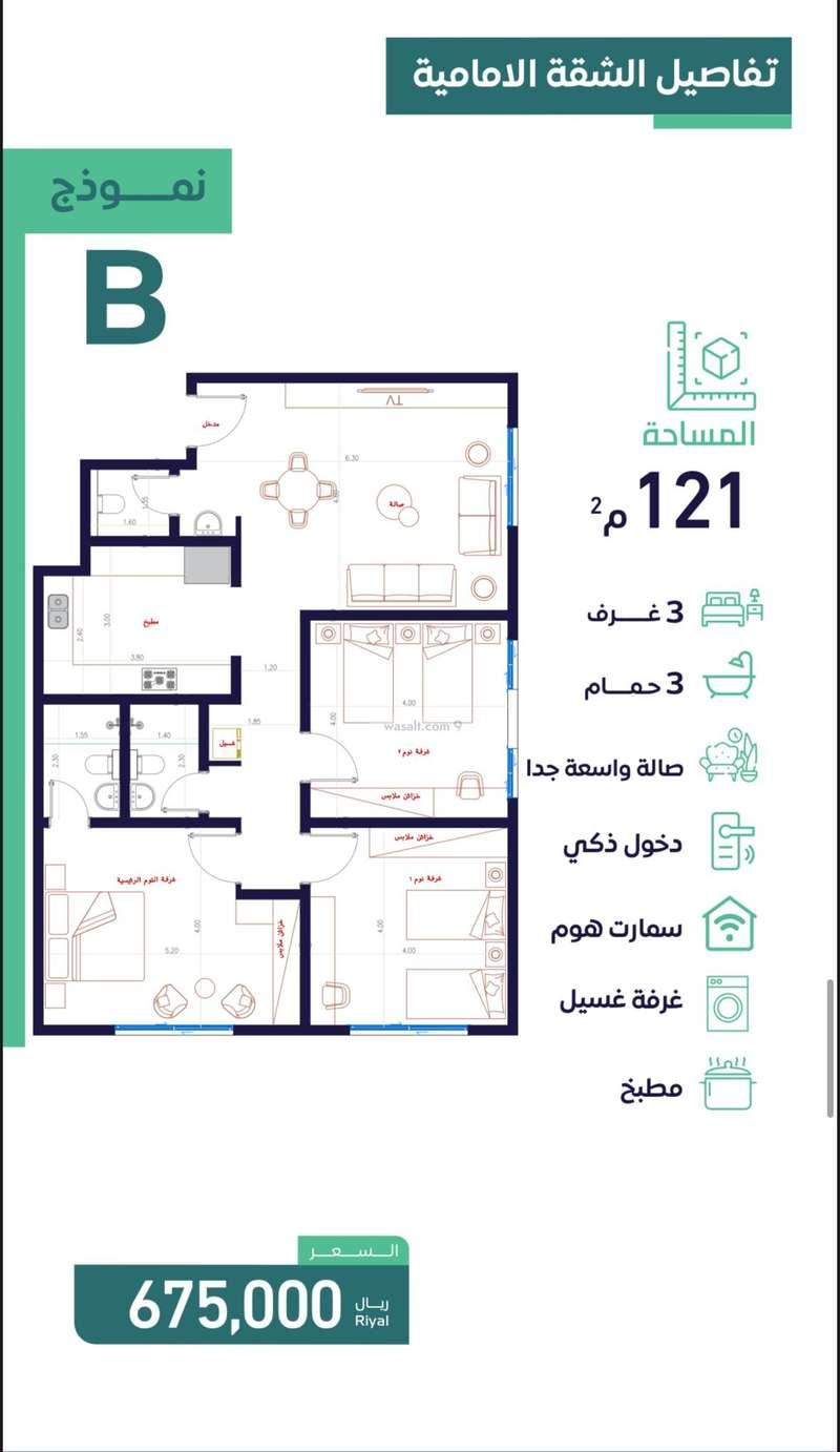 الشقة الامامية 670 الف