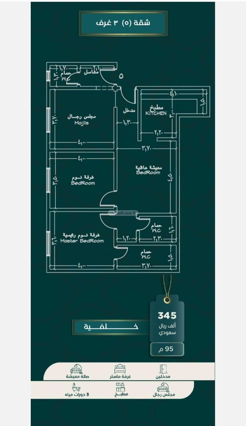 The property has 5 floors, 4 bedrooms, 3 bathrooms, 1 living room, 1 guest room