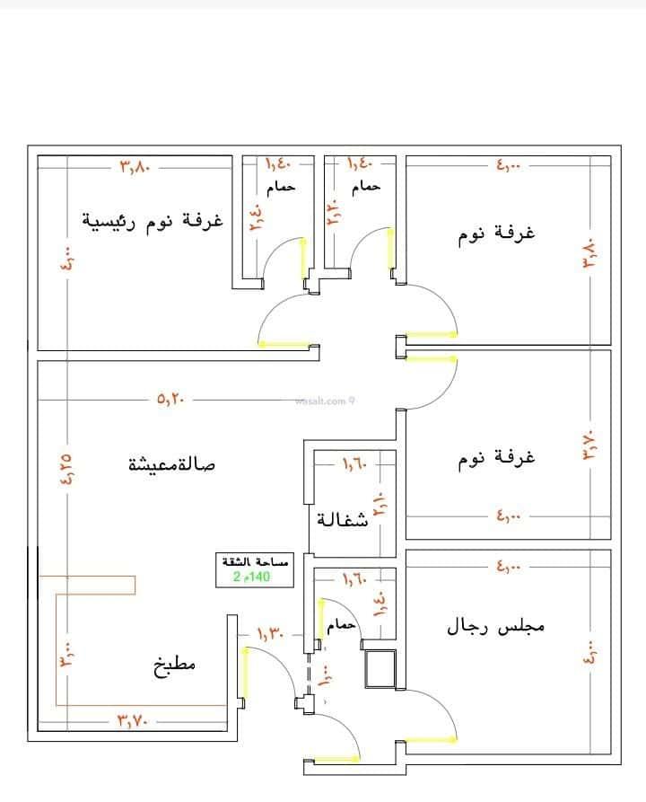اربع غرف مساحة 140 السعر 519 الف