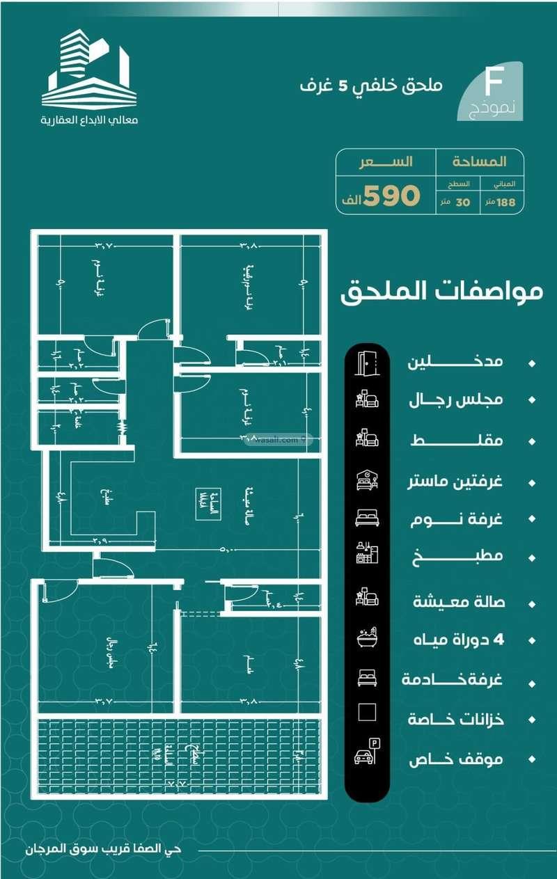 ملحق 6 غرف250متر  تقريبا  بسعر650الف