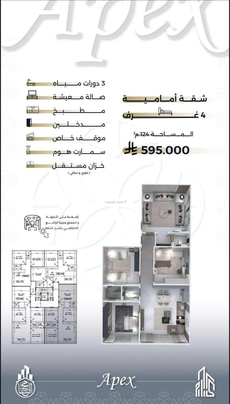 •. 4 غرف أمامية  |124م² |⁠- 595,000 ريال