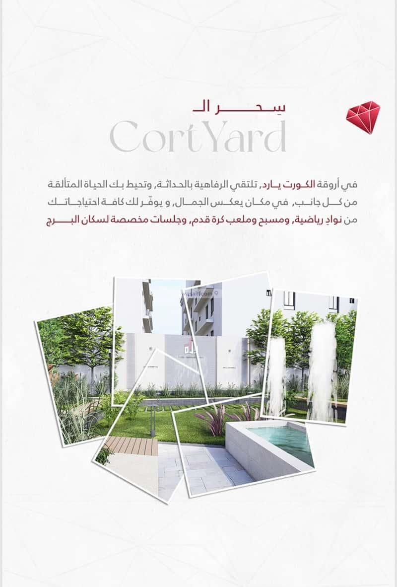 برج سكني يطل من الخلف على كورت يارد يضم مسبح ونوادي وجلسات فاخره — ويطل من الامام على شارع السبعين بنماذج مختلفه من 104 وحده سكنيه على مساحه 2205م