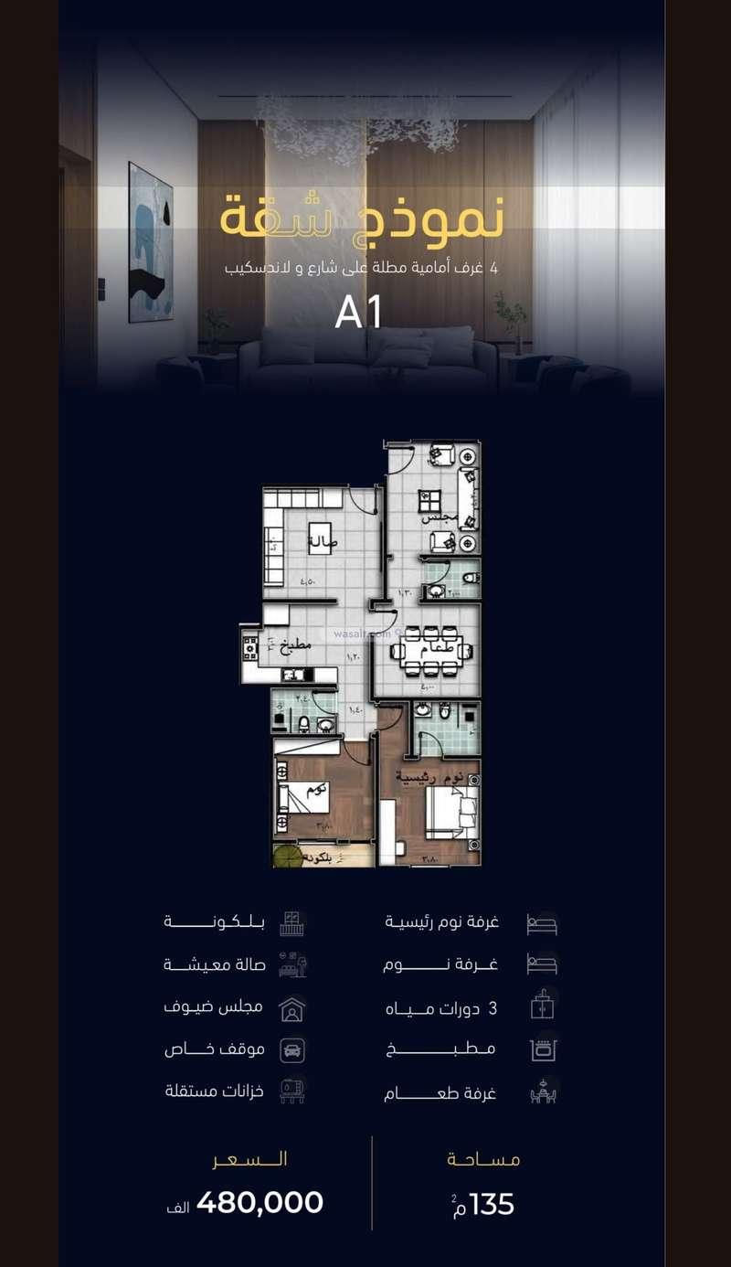 A1: مساحة 140 م – مطلة على لاند سكيب – 499 ألف