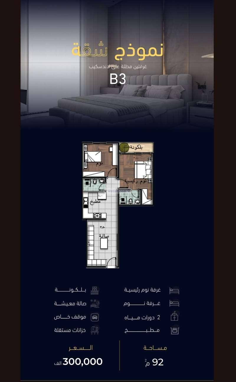 G3: مساحة 181 م – مطلة على لاند سكيب + بلكونة أمامية – 650 ألف
