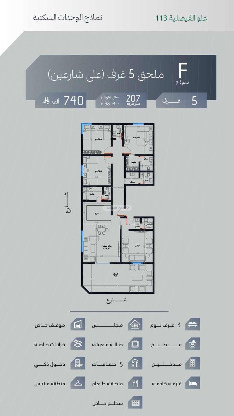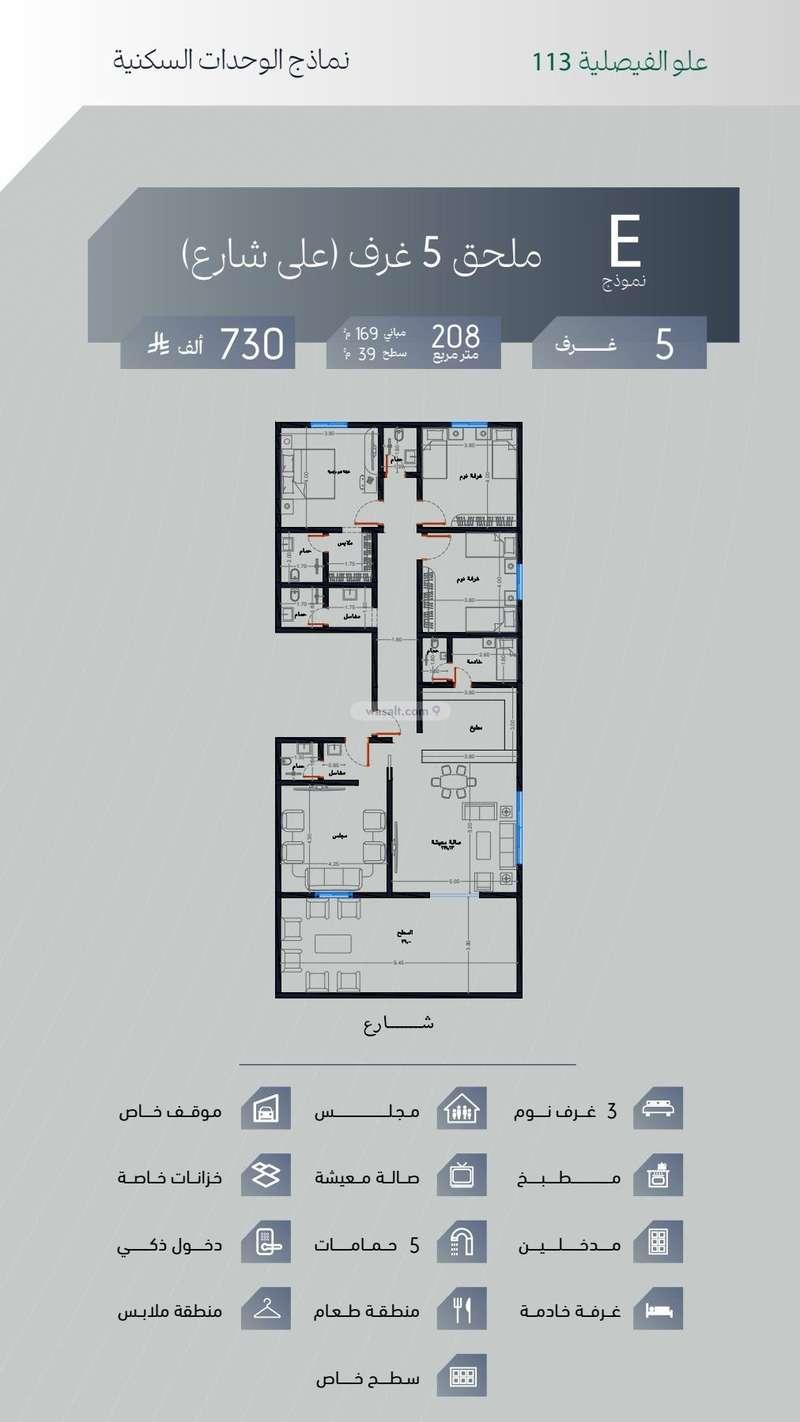 ملحق 5 غرف على شارع ب 730 الف مساحه 208 بملحقاته