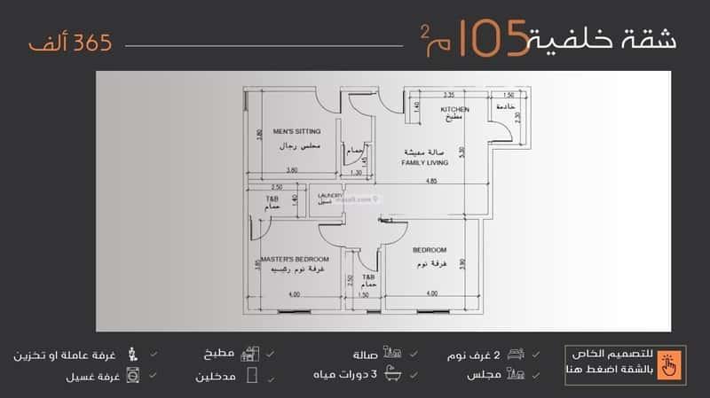 ✳️✳️ ثلاث غرفة مساحة 109 ✳️✳️