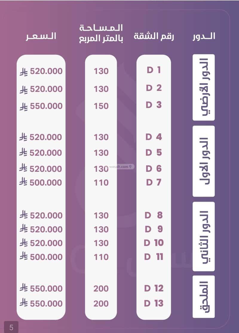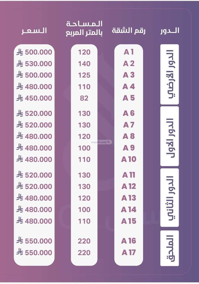 يوجد شقق مختلفه الاسعار تبدا من 450الف وفوق يتوفر شقق ارضيه وعلوية وملاحق