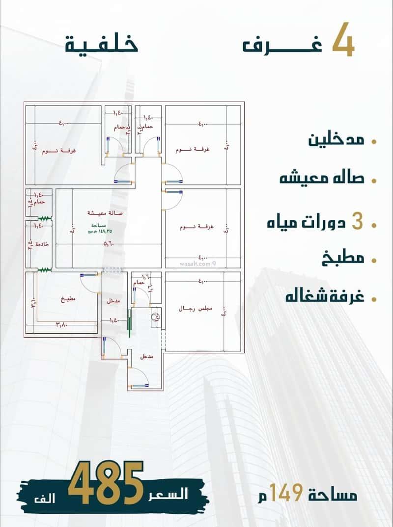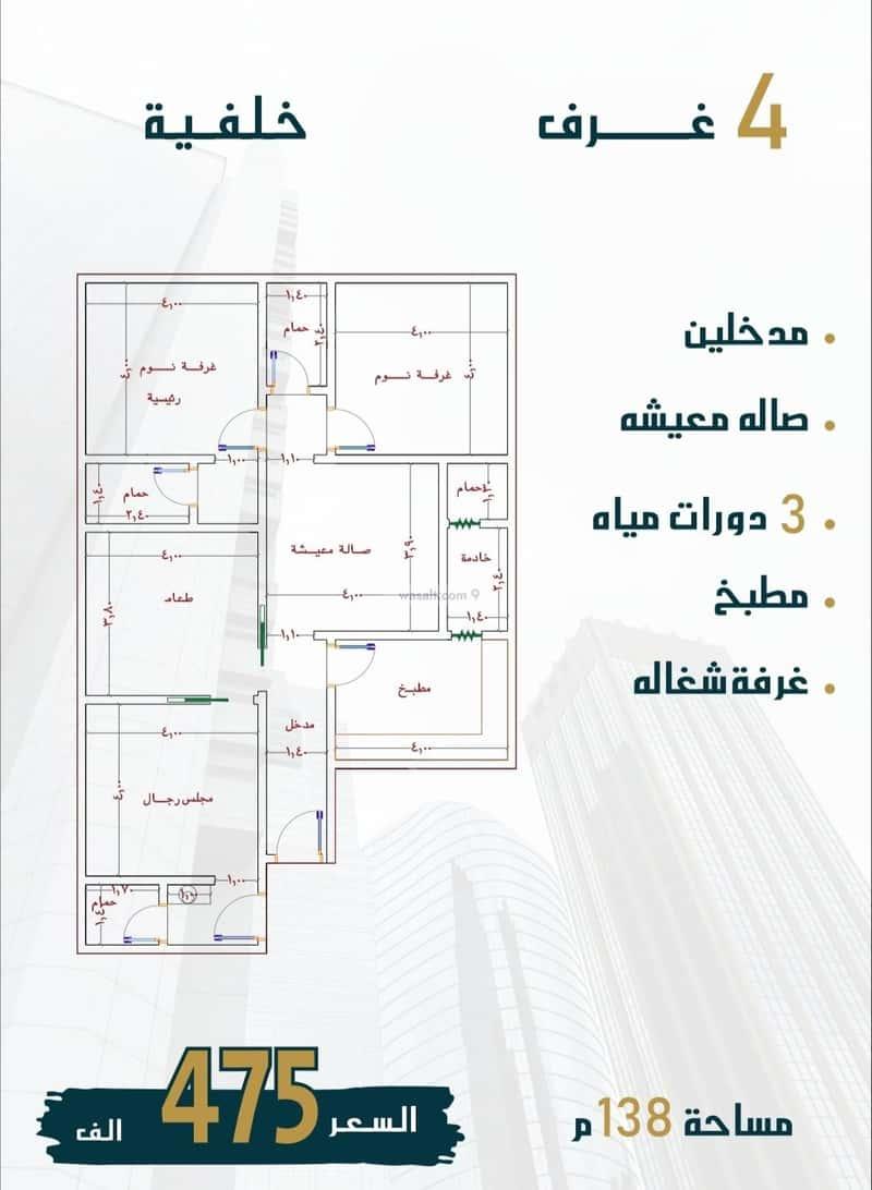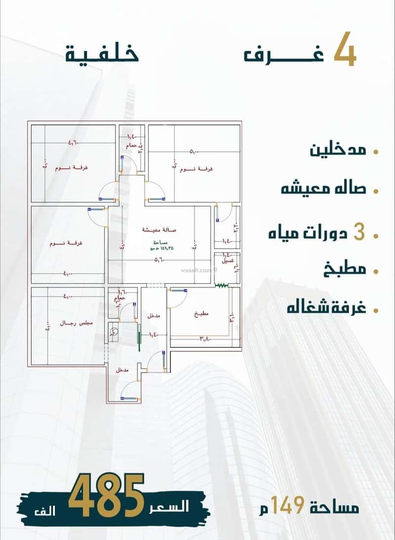 The property has 5 floors, 4 bedrooms, 3 bathrooms, 1 living room, 1 guest room
