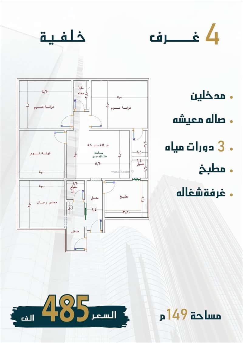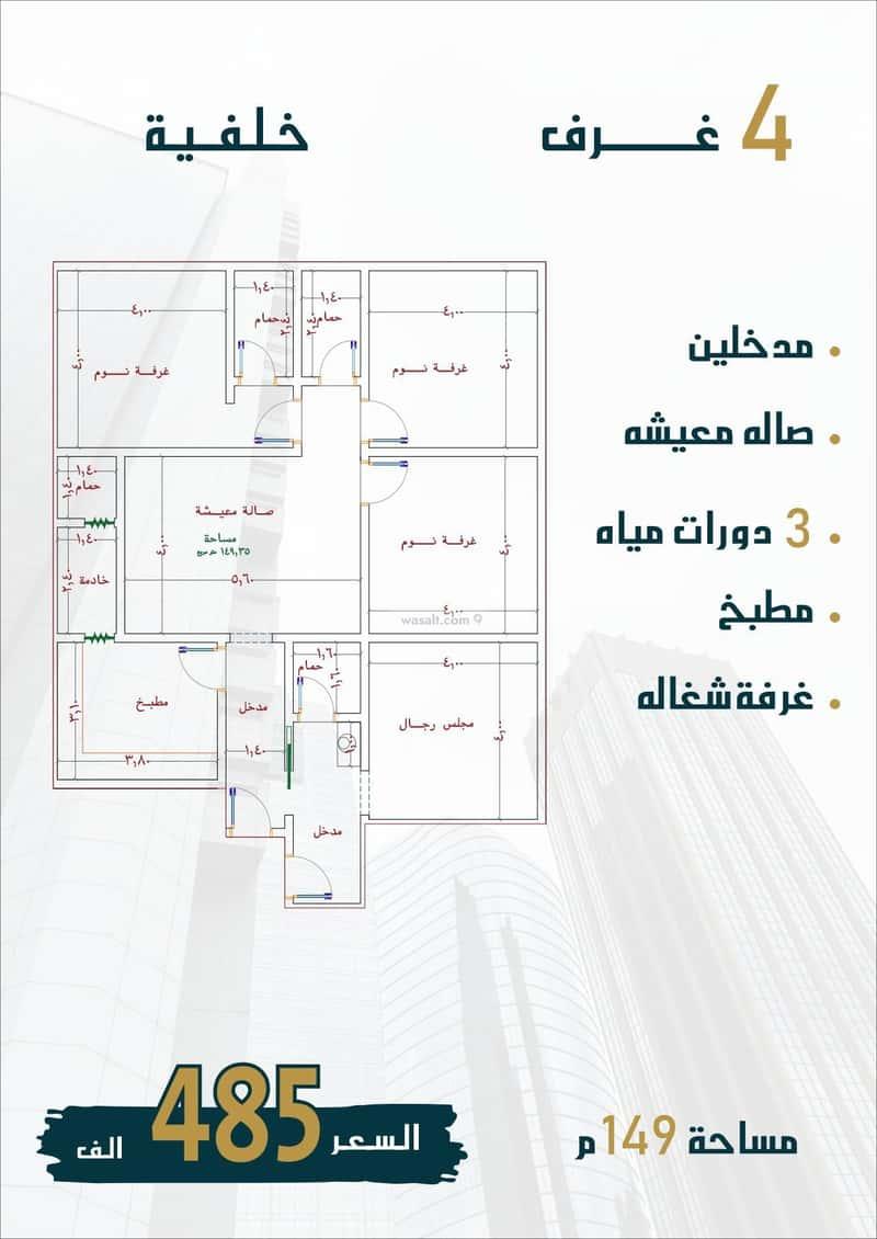 The property has 4 bedrooms, 3 bathrooms, 1 living room, 1 guest room