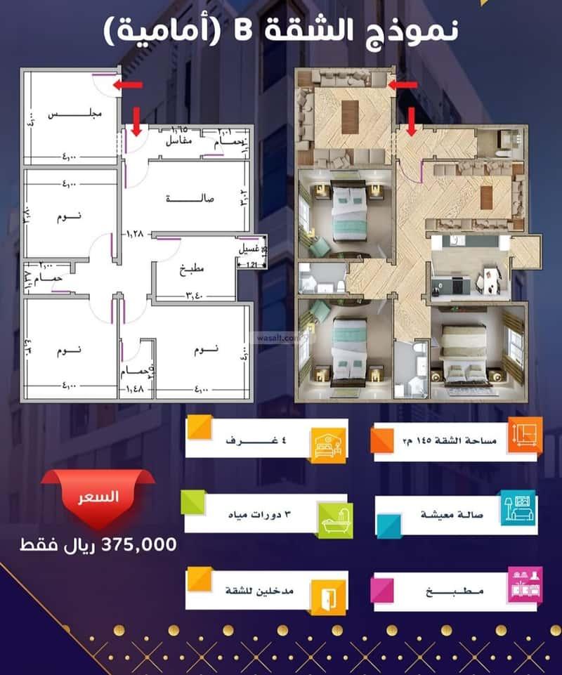 ✅ لكل شقة مواقف خاص + خزان خاص سفلي+ عداد كهرباء خاص .