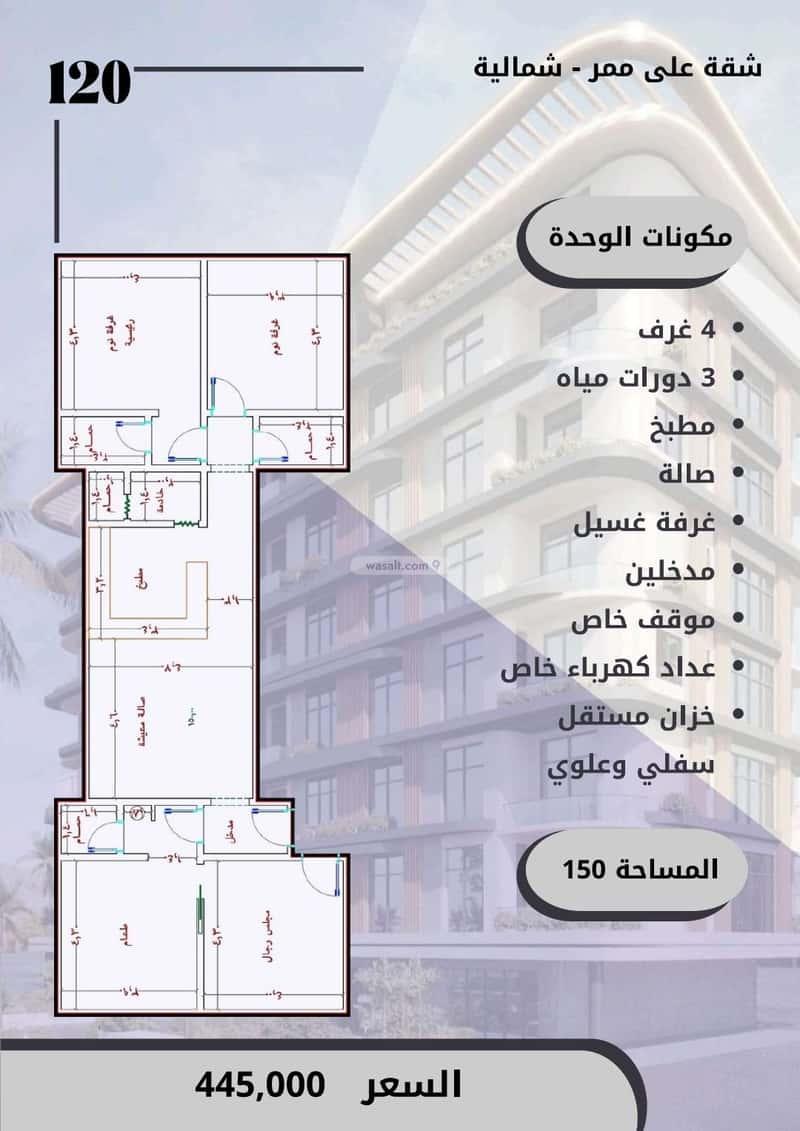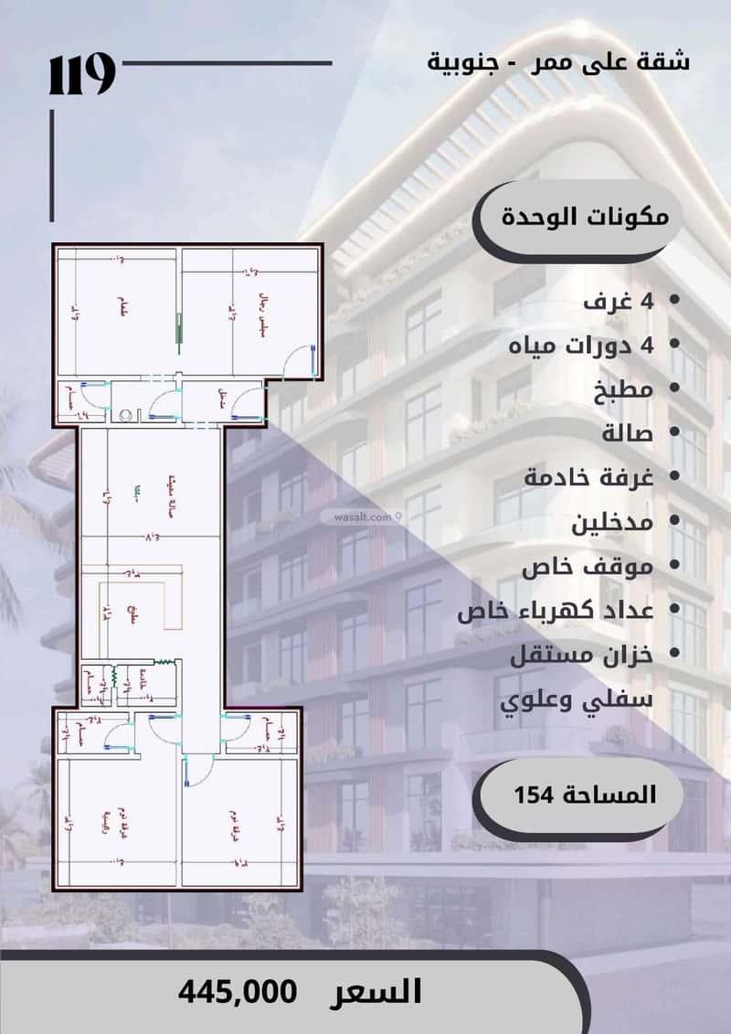 4 غرف على ممر (154م²) بسعر 445,000 ريال