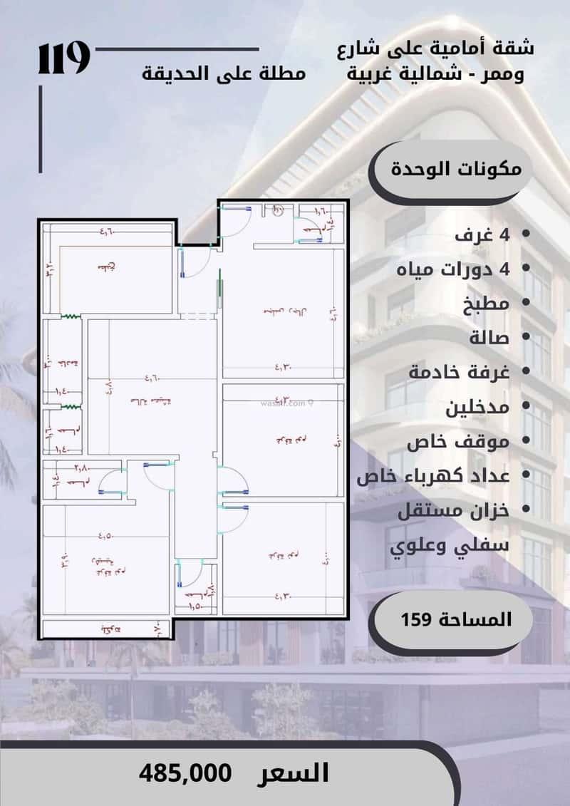 4 غرف ركنية (158م²) بسعر 485,000 ريال
