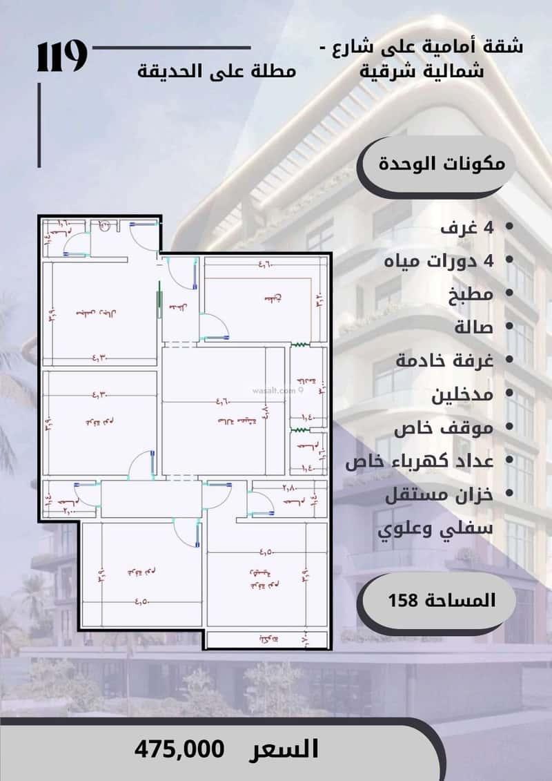 4 غرف أمامية (158م²) بسعر 475,000 ريال