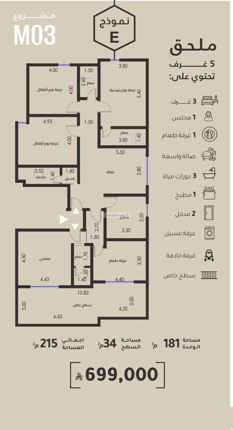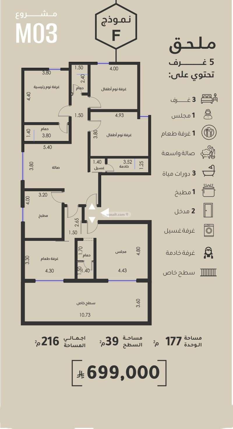*يتكون المشروع ثلاث غرف بمساحات مختلفة وملحقين مكونة من 5 غرف*