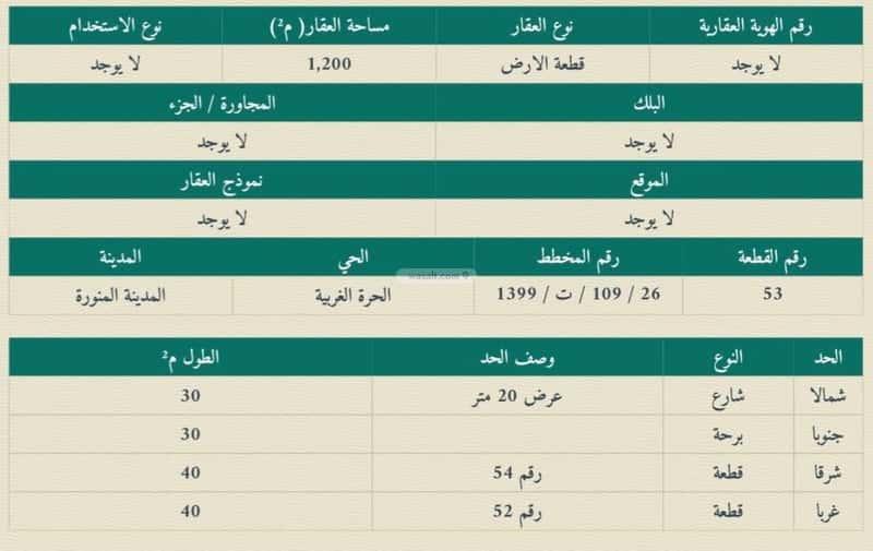 فرصة عقارية واستثمارية مناسبة للمطورين للبيع ارض مناسبة لإقامة برج سكني او فندقي بمساحة 1200م *واجهتها شمالية *بطول 30م ، في المدينة المنورة حي الظاهرة غرب الحرم بالقرب من الدائري الأول وطريق الهجرة *بين طريق الامير عبدالمجيد بن عبدالعزيز وطريق الملك عبدالله* - تبعد عن مسجد الحرم النبوي 3.6 كيلو متر. - ⁠تبعد عن مسجد قباء 2 كيلو متر. - ⁠يسمح عليها بناء برج سكني 9 طوابق ويوجد كروكي مساحي بذلك - ⁠ويسمح ايضاً بناء برج فندقي 8 طوابق - ⁠نسبة البناء 50٪ من مساحة الارض الحدود والأطوال شمالاً:شارع بعرض 20متر طولها على الشارع 30متر جنوباً: برحه طولها على البرحه 30متر شرقاً:قطعة طولها على القطعه 40متر غرباً:قطعة طولها على القطعه 40متر رقم القطعه:53 رقم المخطط:109/26/ت/1399 *سعر البيع * ريال4,650,000 للاستفسار: ‎الوسيط العقاري: محمد الوهابي 📞 0580231330 ‎رخصة الوساطة العقارية: 1100008160 موقع الارض على قوقل ماب ‏ https://maps.app.goo.gl/Cc6DQej4Mqtvj2jY6?g_st=com.google.maps.preview.copy