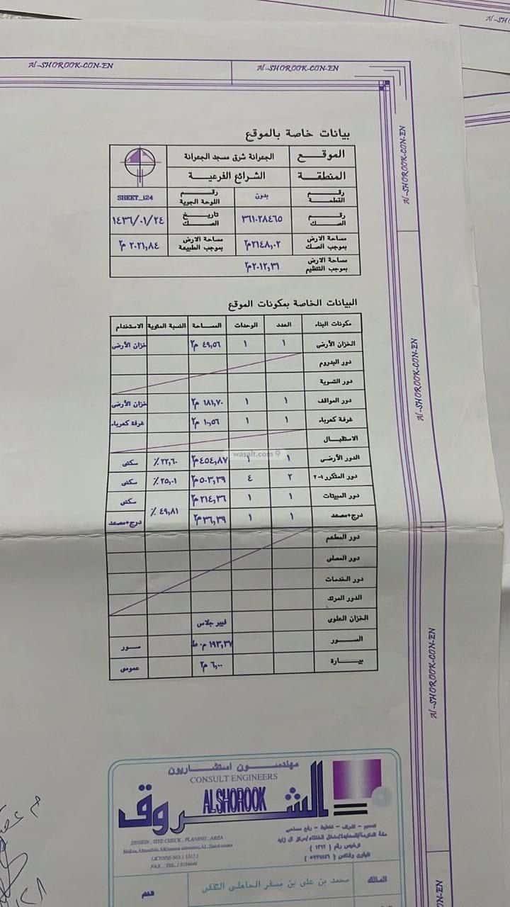 🔹المساحة بوثيقة ٢٠٠٠ متر