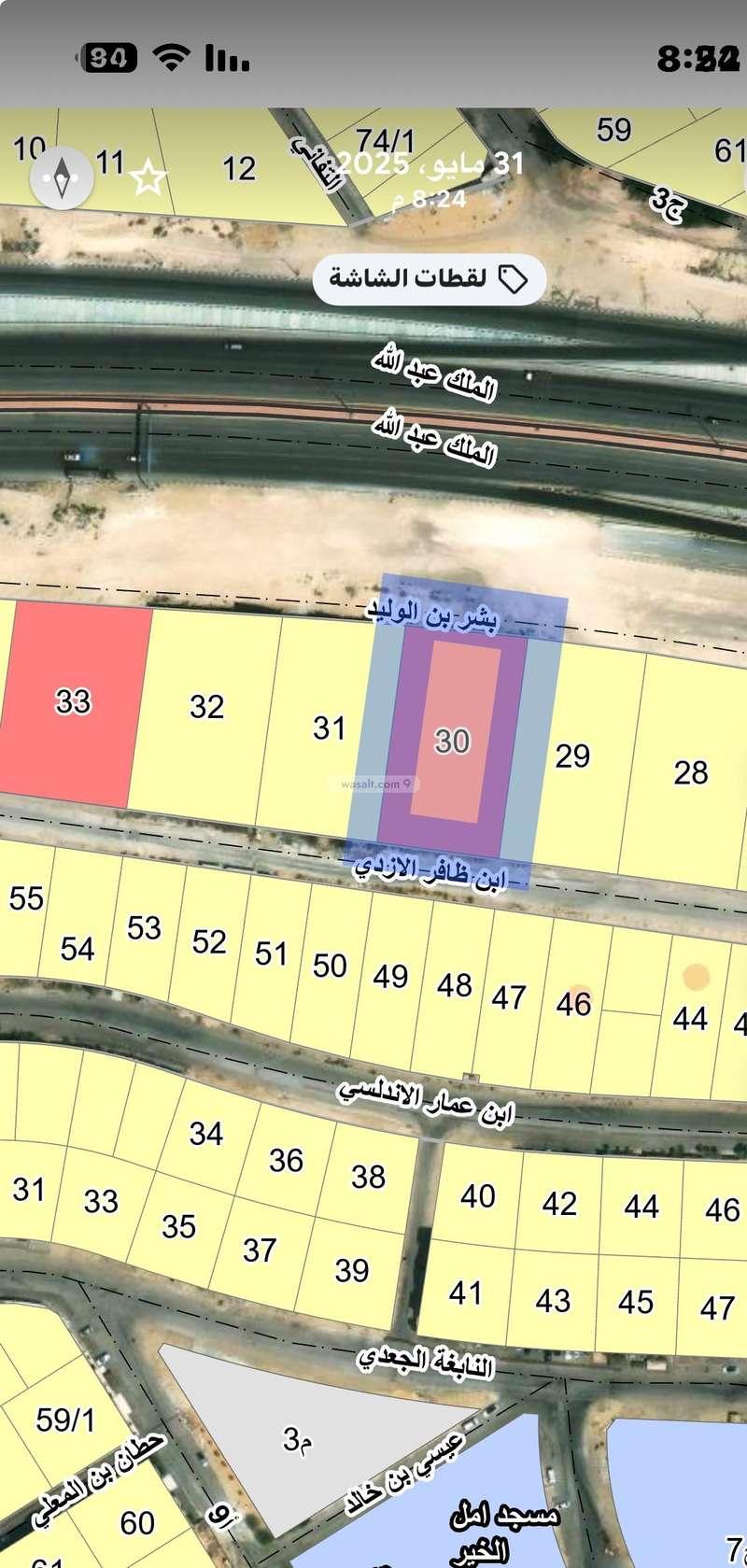 شمالا : طريق الملك عبدالله الدائري عرض 110 متر بطول 38.02