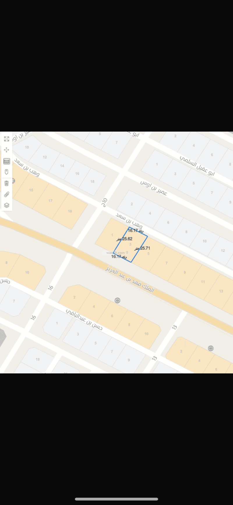يحدها 1 شارع: جنوبية٬ بعرض 100 م
