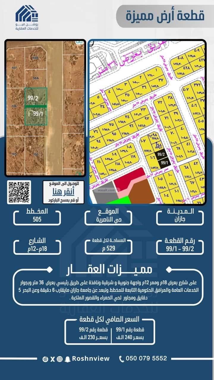 على شارع بعرض 18 متر وممر بعرض 12 متر ونافذة على شارع 36 متر وبجوار الجامعة والمطار الجديد والقصور الملكية وحي الحمراء .