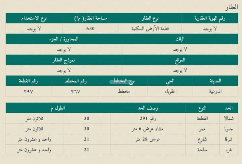 مساحة الارض : 630 م