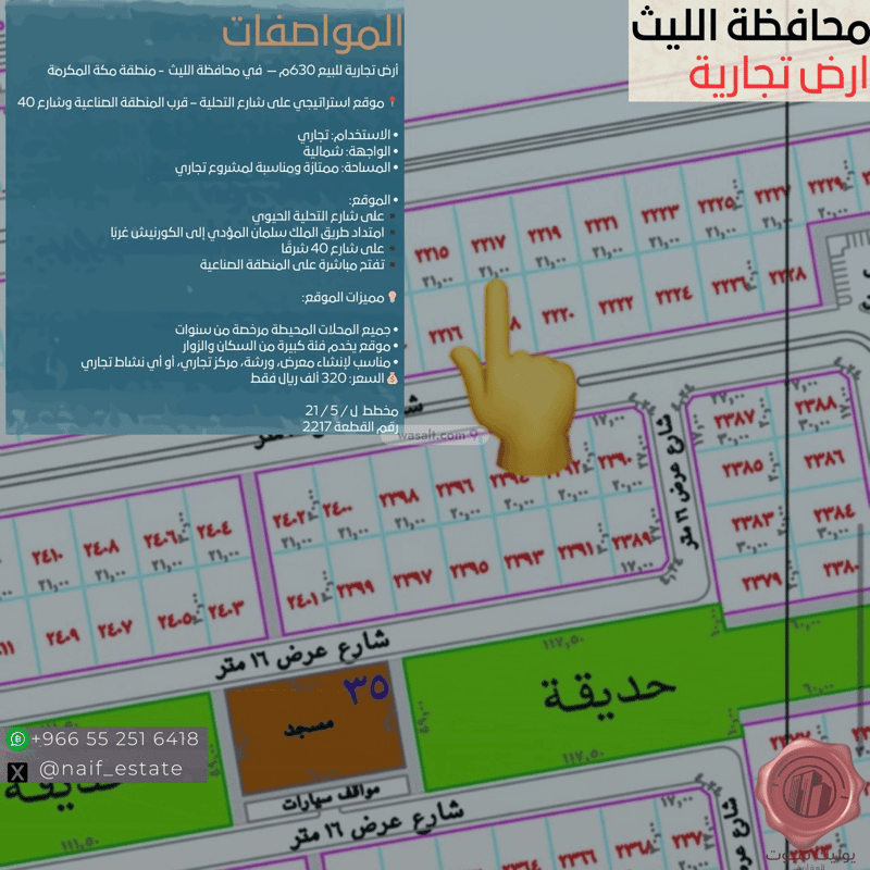 أرض تجارية للبيع في حي (حي رقم (5٬ الليث