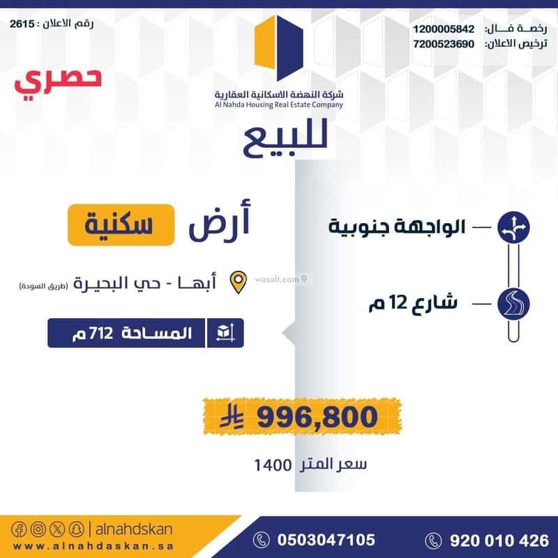 ارض للبيع ابها حي البحيرة ( طريق السودة)