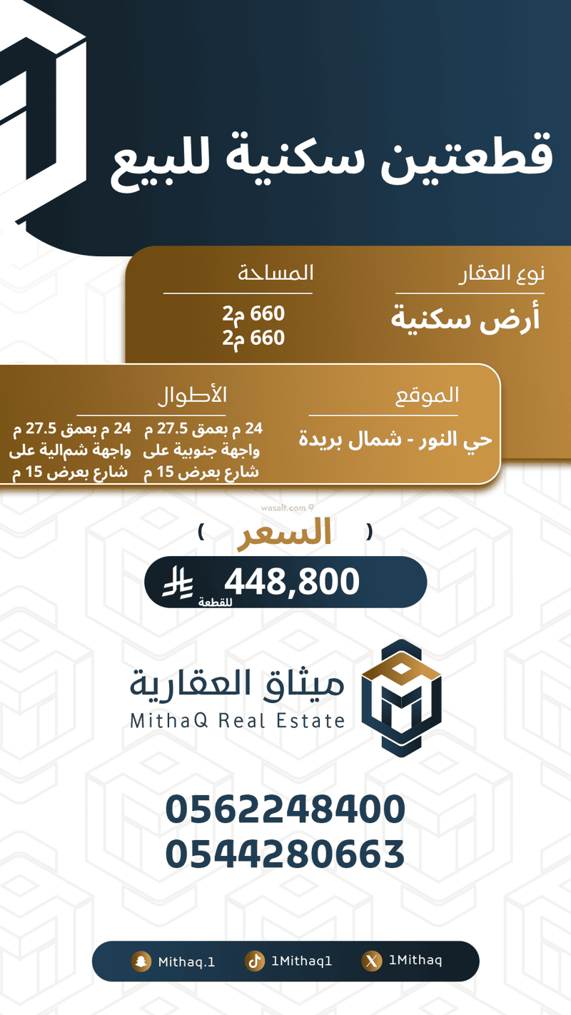المساحة 660م2 لكل قطعة