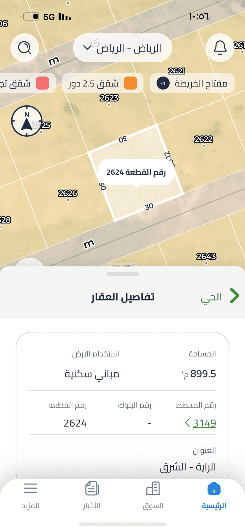 الاطوال : ٣٠✖️٣٠ م. قابله للتقسم الى قطعتين