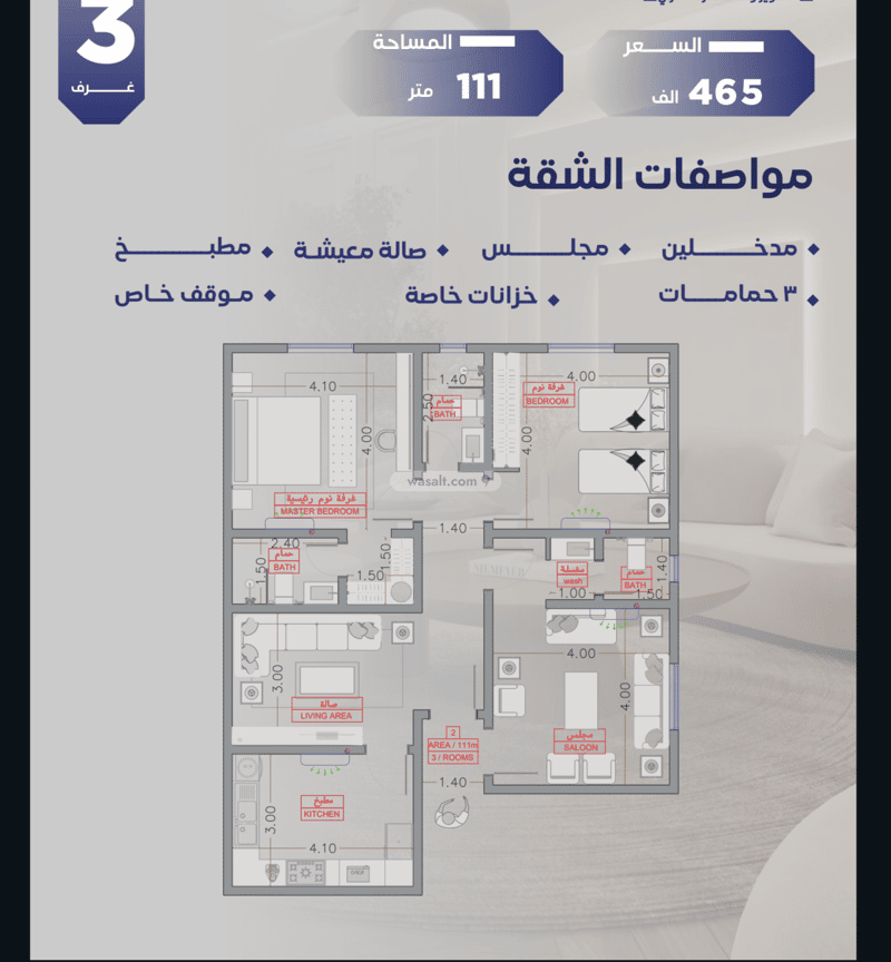 • الأبعاد: 6م × 3.5م