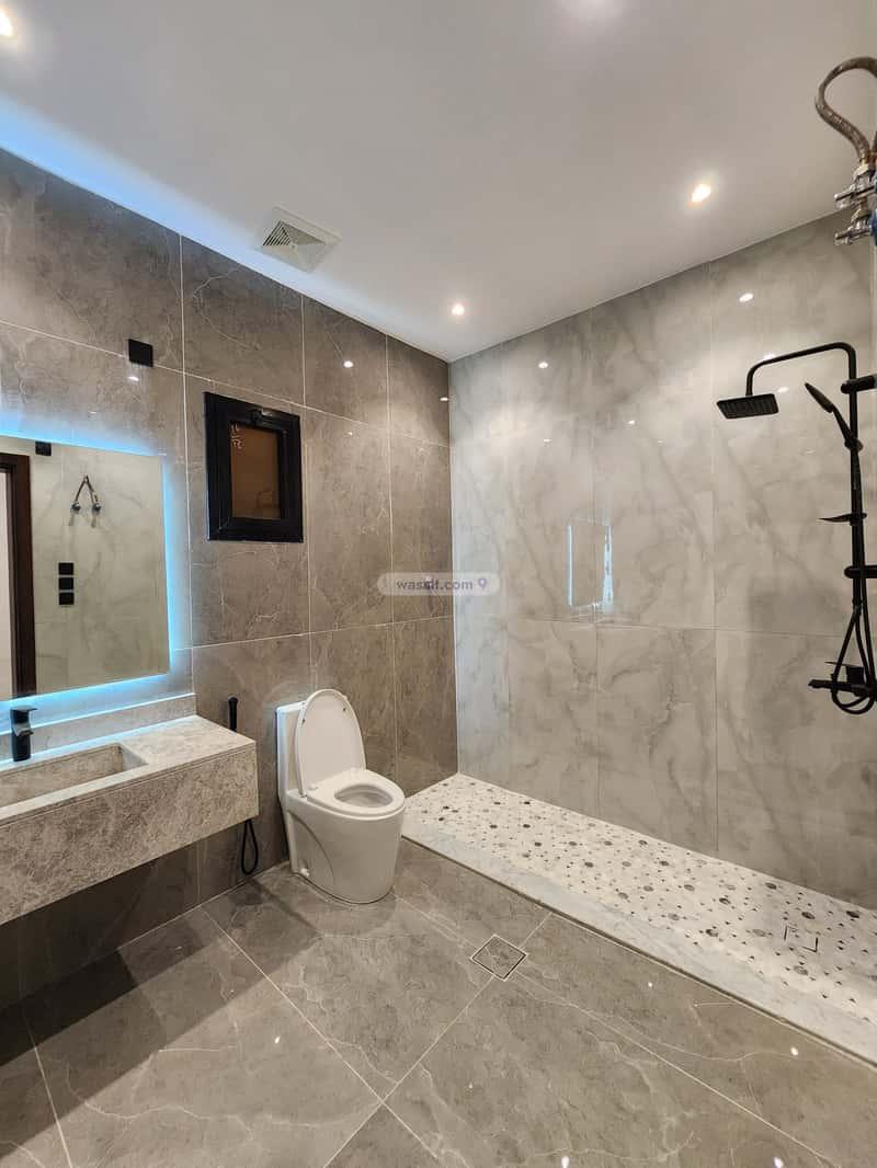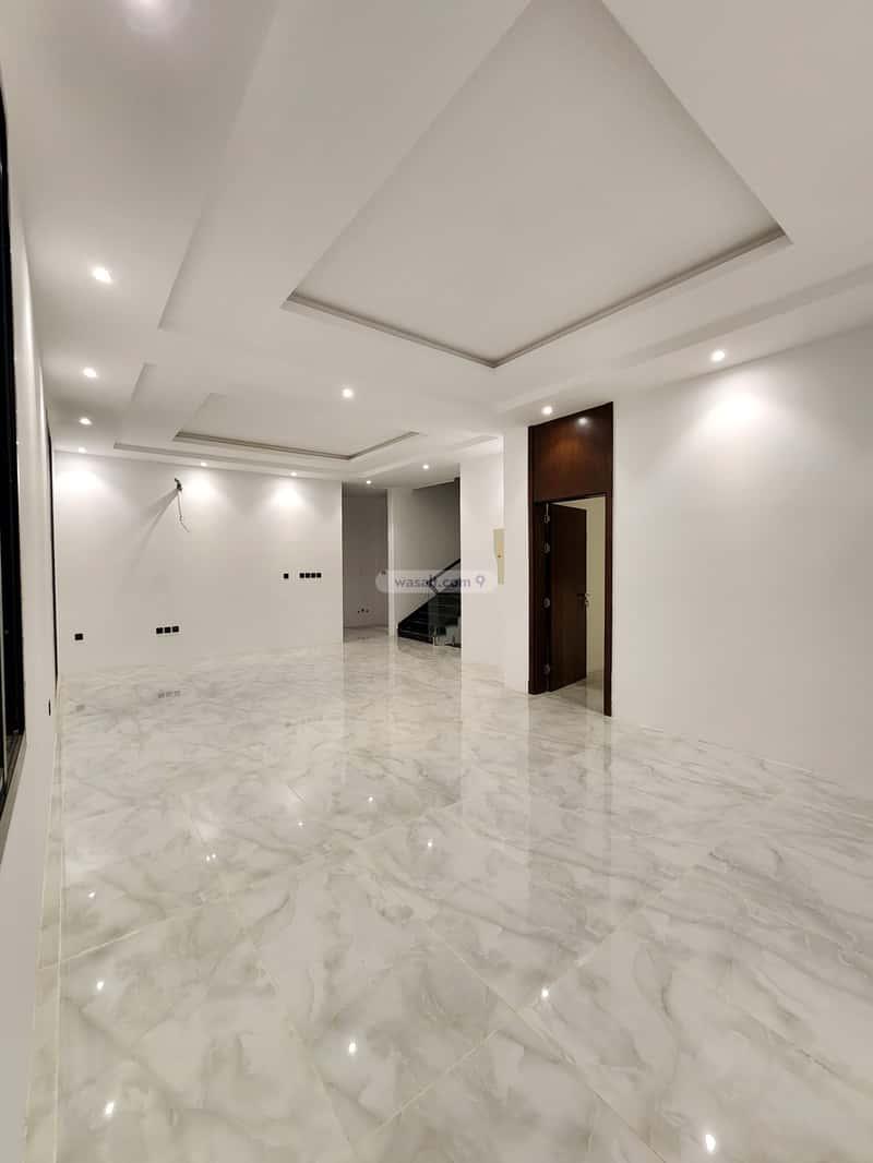 الدور الأول غرفة نوم + غرفة ملابس + ثلاث غرف اخرى + بلكونه جانبيه وثلاث دورات مياه