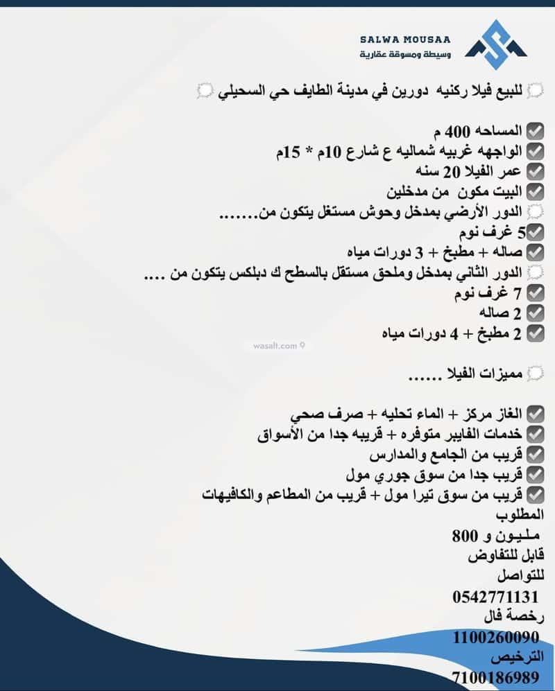 Villa for Sale in Al Qutbiyyah Asharqiyyah, At Taif