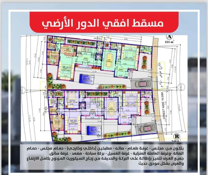 يحدها 1 شارع: شمالية٬ بعرض 16 م