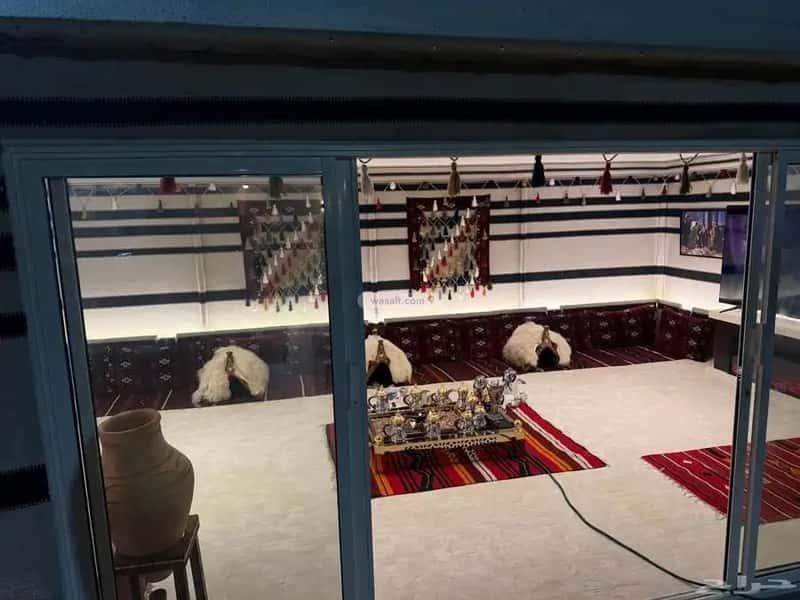 الحوش الارضي مساحه كبيره مواقف سيارات تسع لاكثر من 4 سيارات + حديقه + ملحق كبير بمدخل داخلي وخارجي + خيمه مودرن واسعه