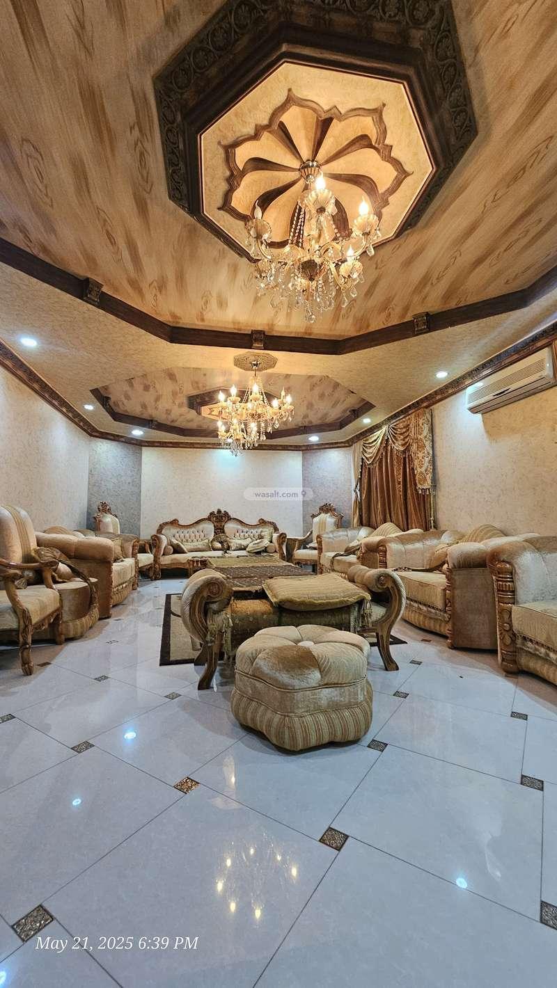 - الفيلا: الدور الأول (الأرضي) مجلس رجال ومجلس نساء ومجلس مختصر ومقلط ومطبخ بوفيه وغرفة مستقلة بحمامها، ويوجد صالة جلوس ودرج داخلي وشلال ديكوري تحت الدرج، وحمام مجلس الرجال وحمام مجلس النساء مع مغاسل رخام