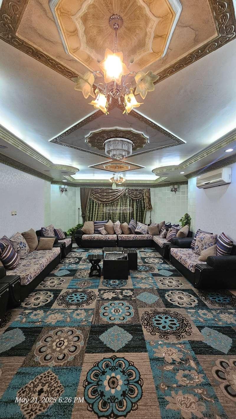 - الدور الثالث بدرج خارجي مستقل من الحوش ويمكن الوصول له من داخل الفيلا عن طريق باب فاصل حسب الرغبة ويتكون من مجلس رجال وصالة طعام وضيافة ومجلس نساء وغرفتين نوم ومطبخ ودورتين مياه ويتبعه سطح مستقل وفيه شلال مياه وديكور خاص