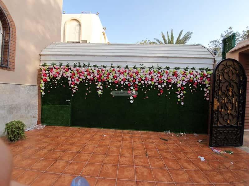 الحوش جراج وغرفة سائق ومسبح وديوانيه بها مجلس وسيرفس وغرفه وحمام