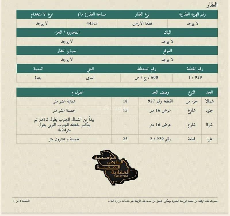 Discover this prime residential land located in the heart of Al Nadi, Jeddah, perfect for your future home or investment. Spanning an area of 445.5 square meters, this plot offers ample space for construction while being situated in a favorable neighborhood.