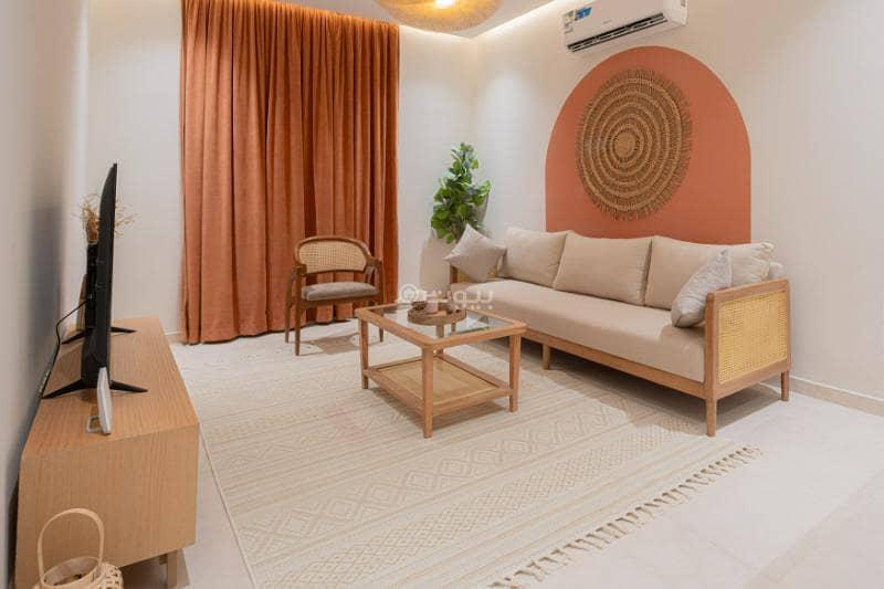 Fully furnished apartment with a stylish modern design, ideal for individuals or couples looking for comfort and privacy in an upscale location in North Central Riyadh.
