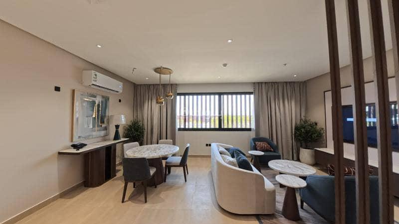 The compound features both furnished and unfurnished apartments for long term family leasing, available in the following models: