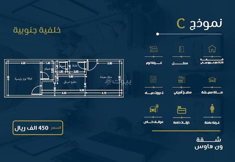 For sale one house in Nahda 177 project with a building area of 57 square meters Building Entrance consisting of: rooms living room 2 bathrooms Worker rooms Features: * Private parking * Independent upper and lower tanks * Installation of split + central duct * Central gas - two elevators * Close to park and mosque * Warranty against hidden defects * Owners association for one year for free --------------------------------- Near Lafi Atelier Near Radesi Mall Near King Abdulaziz International Airport Near the waterfront » The amount required is 450 thousand * We also have other projects Nahda - Zahra - Rawdah - Salama - Faisal - Abhr in prime locations - large streets Commercial - Administrative - Residential Studio room Two rooms 3 - 4 - 5 rooms Commercial shops - Administrative offices