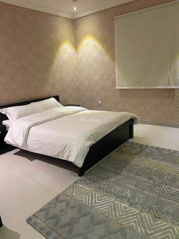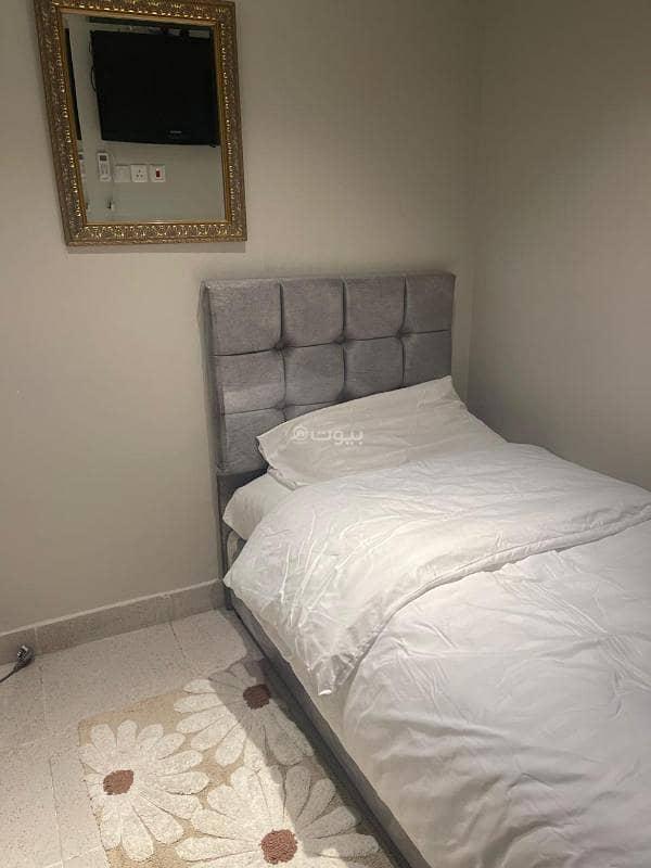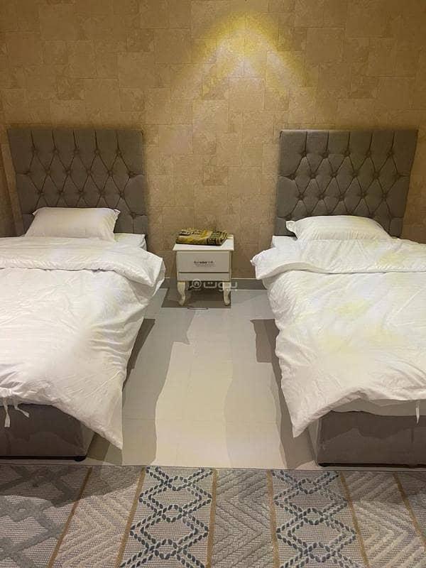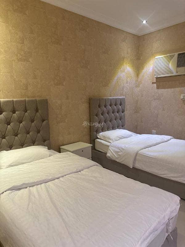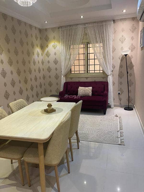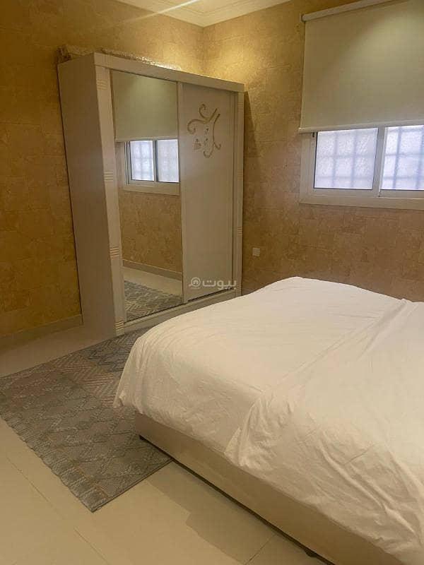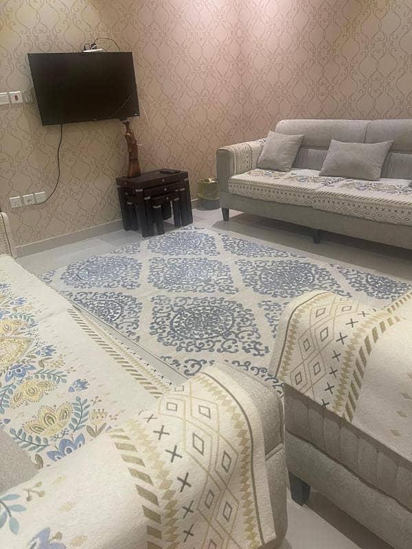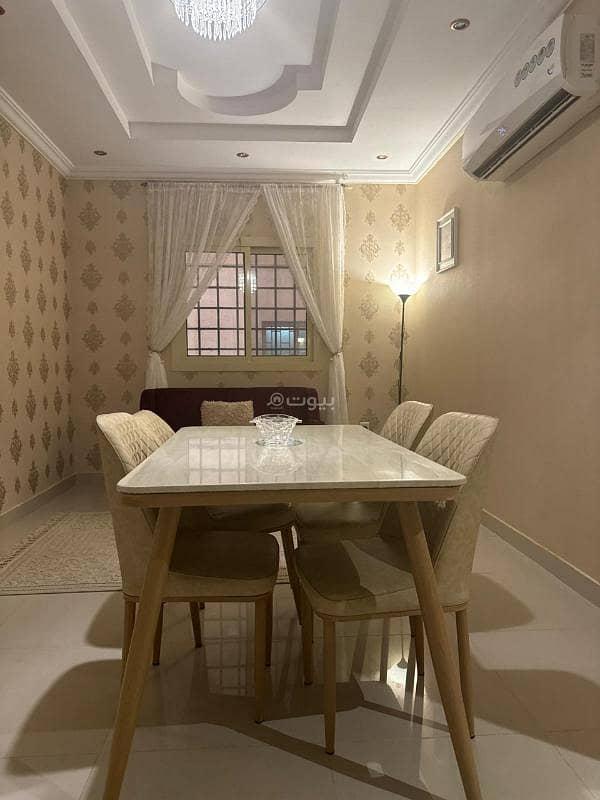 Fully furnished apartment for rent consisting of two bedrooms, a living room, a dining room, a complete kitchen, and two bathrooms, with a private parking space, located on the first floor, behind Hala Supermarket, close to Al-Sab'een Street, Al-Arba'een Street, Al-Hiraa Street, the airport, and Arab Mall. Utilities (electricity and water) included. The minimum rental period is six months with an electronic contract from the Ejaar platform for the tenant. The price is 3,500 Riyals per month, with a refundable deposit of 1,000 Riyals. The annual rent is two payments of 40,000.