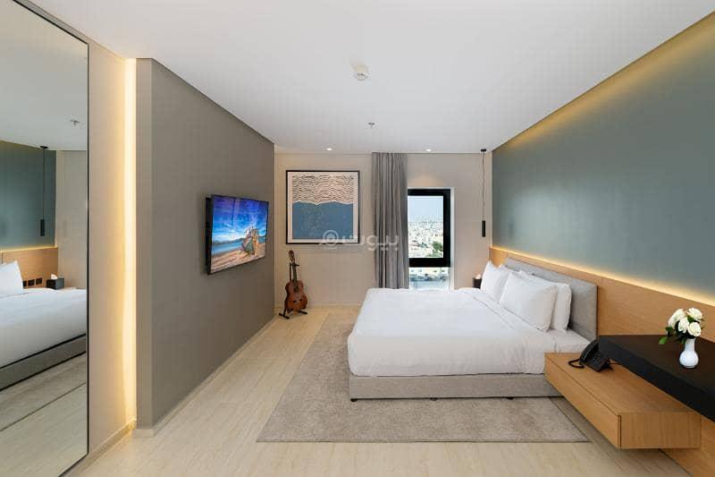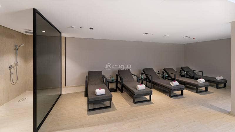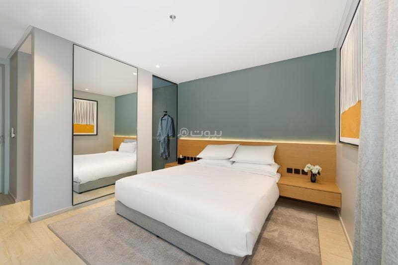 The "Arai Suites" residential complex is located in Riyadh on Al Olaya Road opposite Kingdom Tower, and offers distinguished and high-quality hotel services to its residents, including a gym that operates 24/7, an indoor pool, underground parking, security with surveillance cameras, an outdoor barbecue area, an indoor lounge, and an outdoor seating area on the roof. The suites are meticulously designed and offer options including a one-bedroom suite, a two-bedroom suite, and a three-bedroom suite, all equipped with world-class shared amenities that include complimentary services: rent inclusive of electricity and water bills - access to the gym - indoor pool - weekly cleaning service - security and surveillance cameras 24/7 - maintenance service 24/7.