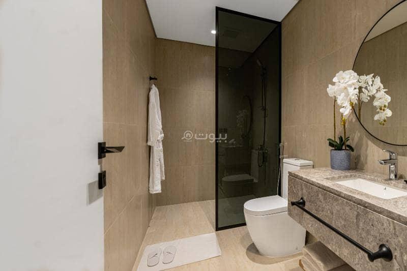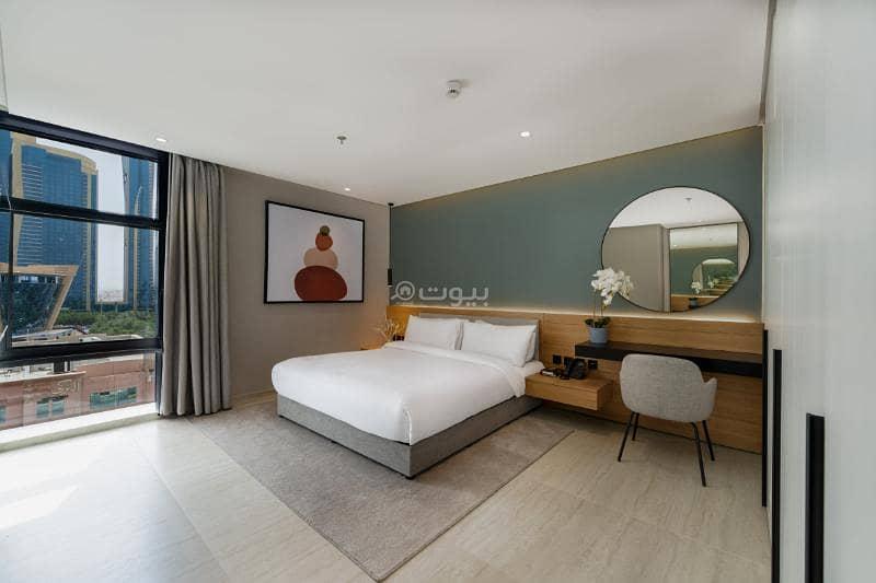 The "Arai Suites" residential complex is located in Riyadh on the Al Olaya Road opposite the Kingdom Tower, offering premium and high-quality hotel services to its residents, including a gym that operates 24/7, an indoor pool, basement parking, security with surveillance cameras, an outdoor barbecue area, an indoor lounge, and an outdoor seating area on the roof. The suites are meticulously designed and offer options including a one-bedroom suite, a two-bedroom suite, and a three-bedroom suite, all equipped with world-class shared amenities that include free services: rent inclusive of electricity and water bills - access to the gym - indoor pool - weekly cleaning service - 24/7 security and surveillance cameras - 24/7 maintenance service.