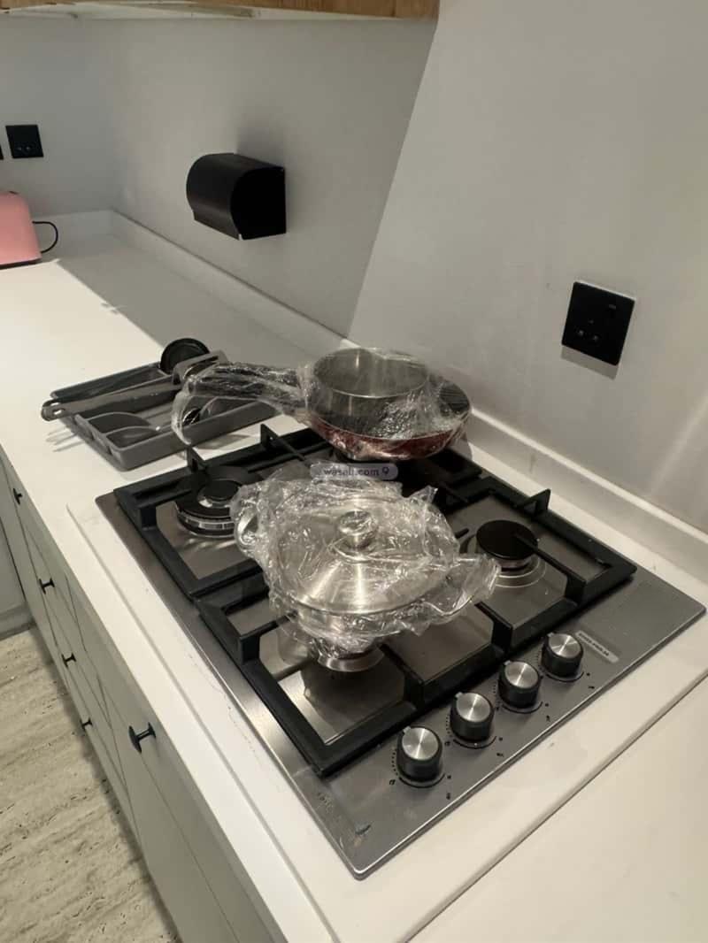 مطبخ خشب زان مجهز بالكامل مع طاولة طعام لأربعة أشخاص وأدوات مطبخ متكاملة